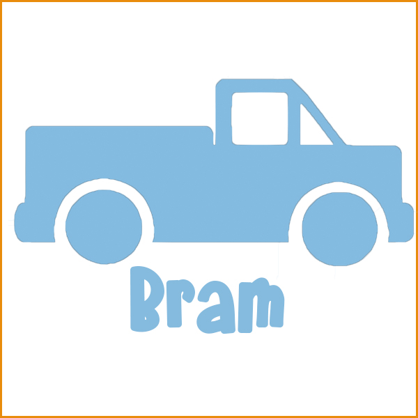 Stoere gepersonaliseerde deursticker met jouw naam en de afbeelding van een truck.