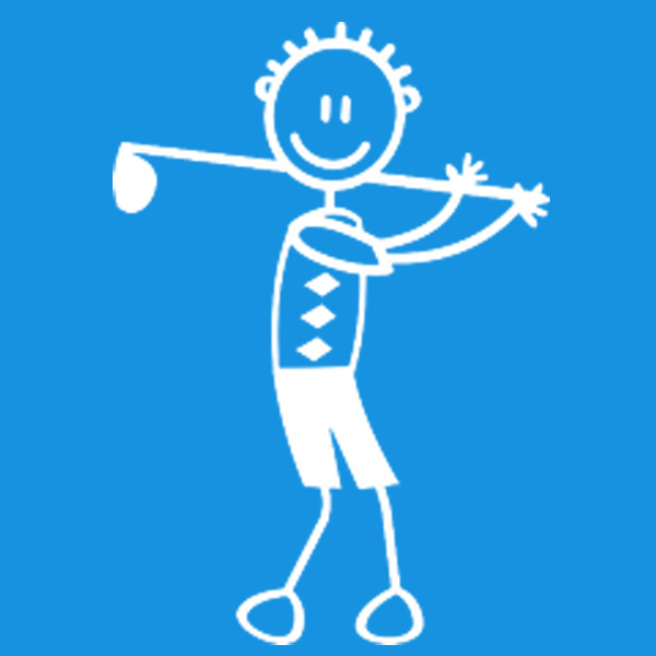 Sticker van een man / vader met een golfstick in zijn hand. Leuk je auto met deze golfsticker. Er zijn nog meer stickervarianten van de golfsport. Bijvoorbeeld deze vader/man die aan het golfen is of deze dame,
